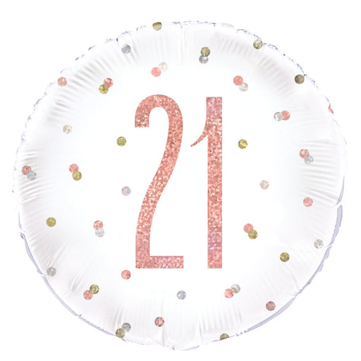 Happy 21st Birthday Rose Gold Round Helium Filled Balloon (Optional Helium Inflation)