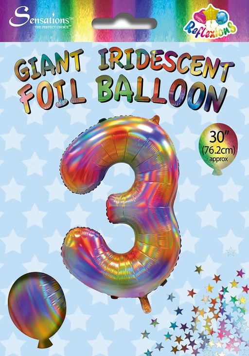 View full detailsRainbow Iridescent Number 3 Giant Foil Balloon 30" (Optional Helium Inflation)