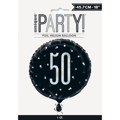 Black and Silver Happy 50th Birthday Round Helium Filled Balloon (Optional Helium Inflation)