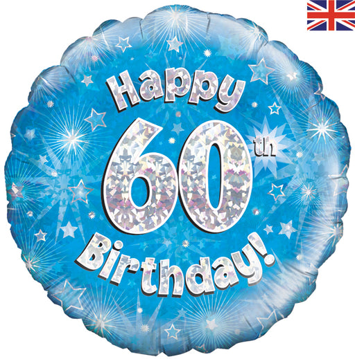 Happy 60th Birthday Blue Holographic 18" Balloon (Optional Helium Inflation)
