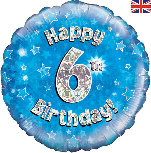 View full detailsHappy 6th Birthday Blue Holographic 18" Balloon (Optional Helium Inflation)