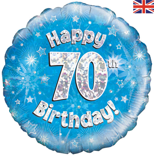 Happy 70th Birthday Blue Holographic 18" Balloon (Optional Helium Inflation)