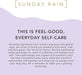 - Kind to Skin: Always soft and gentle on skin, Sunday Rain is suitable for all skin types. Made with fragrances and ingredients that connect with your changing needs