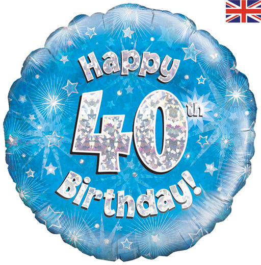 View full detailsHappy 40th Birthday Blue Holographic 18" Balloon (Optional Helium Inflation)