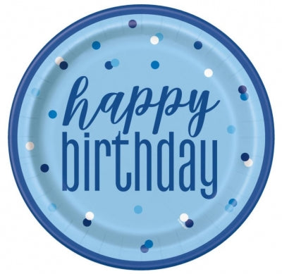 Sweets 'n' ThingsPack of 8 Happy Birthday large paper plates These paper plates measure 21.9cm in diameter Blue Glitz Images are for display purposes only, items m...