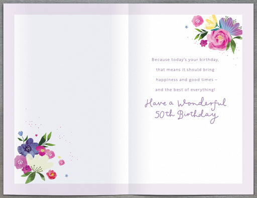 Floral Celebrations Birthday Card for 50th, Conv Design