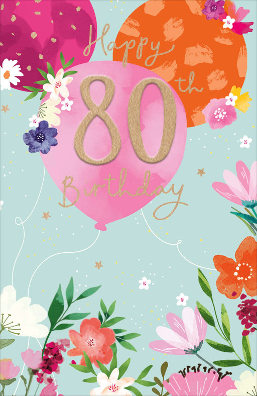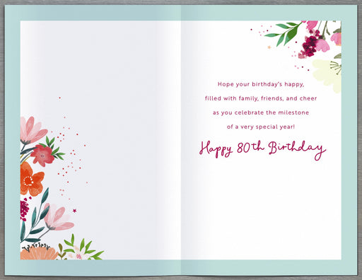 Floral Celebrations Birthday Card for 80th, Conv Design