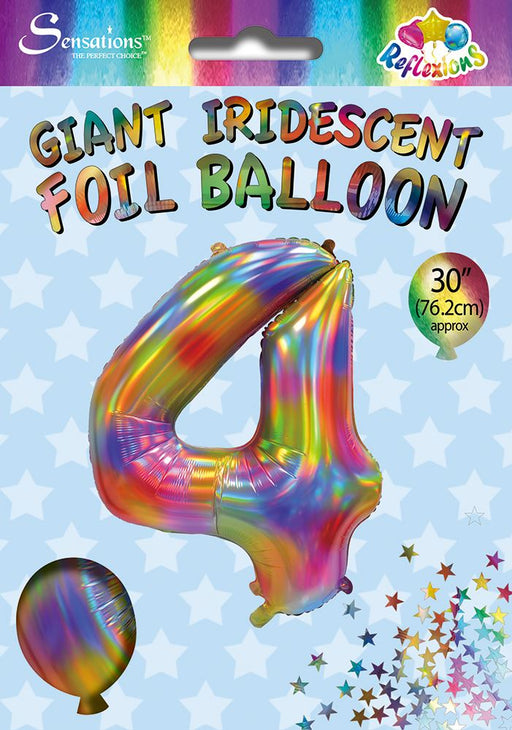 View full detailsRainbow Iridescent Number 4 Giant Foil Balloon 30" (Optional Helium Inflation)