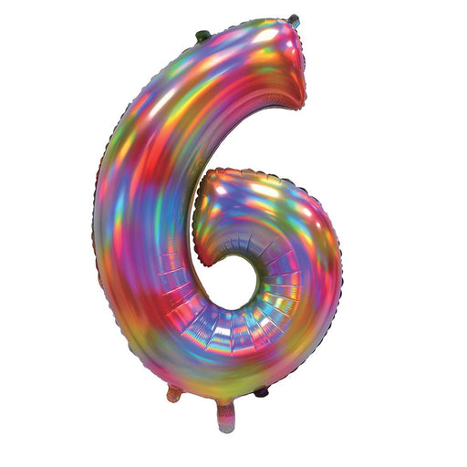 View full detailsRainbow Iridescent Number 6 Giant Foil Balloon 30" (Optional Helium Inflation)