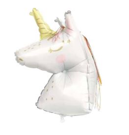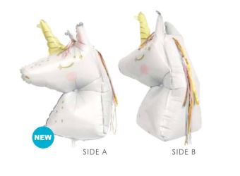 UniqueUnicorn HEad in beautiful white and gold design, with hair Comes complete with 25.5″ Foil Optional Helium Filled Ribbon in colour to match balloo...