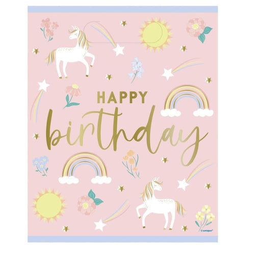 UniqueUnicorn Party Bags Pink in colour, Loot Bags Perfect for unicorn and rainbow and happy party time 8 Per Pack in plastic wrap cardboarded headed bag