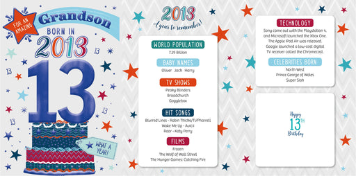 View full details2013 Happy 13th Birthday Grandson From The Year You Were Born
