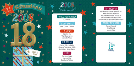 View full details2008 Happy 18th Birthday Grandson From The Year You Were Born