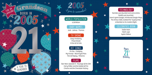 View full details2005 Happy 21st Birthday Grandson From The Year You Were Born