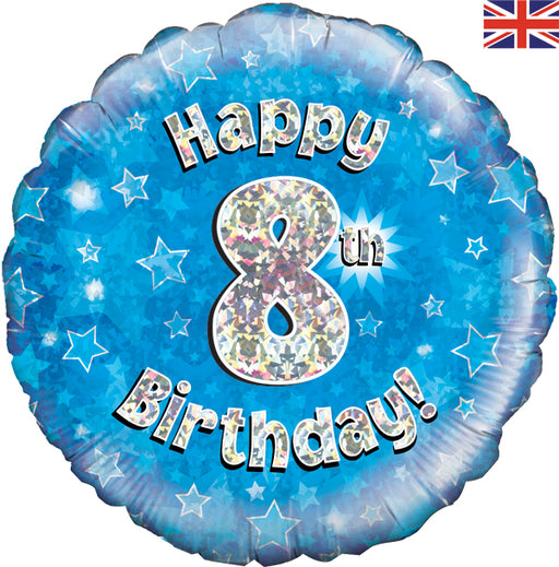 View full detailsHappy 8th Birthday Blue Holographic 18" Balloon (Optional Helium Inflation)