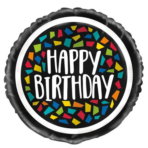 UniqueBirthday balloon in prismatic design. 18" Foil Including Ribbon Including Free Plastic Weight Designs may vary slightly from images