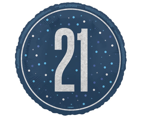 21st Dark Blue Glitz - Helium Filled Foil Balloon (Optional Helium Inflation)