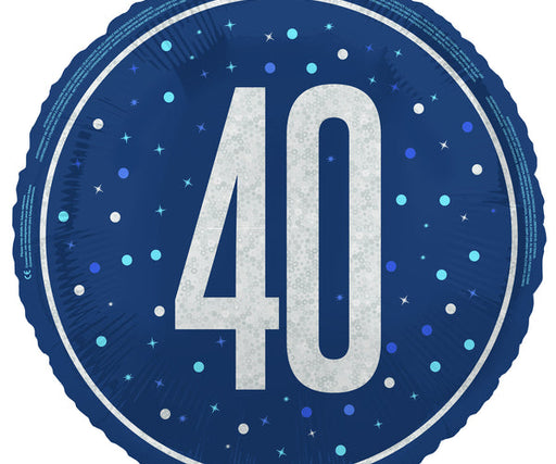 40th Dark Blue Glitz - Helium Filled Foil Balloon (Optional Helium Inflation)