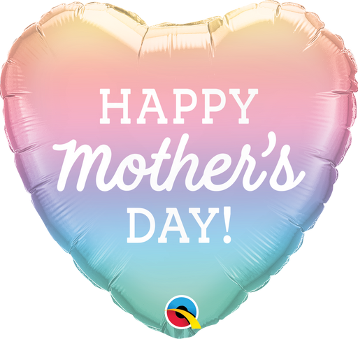 Pastel Ombre Happy Mothers Day Heart Foil Balloon (Optional Helium Inflation)