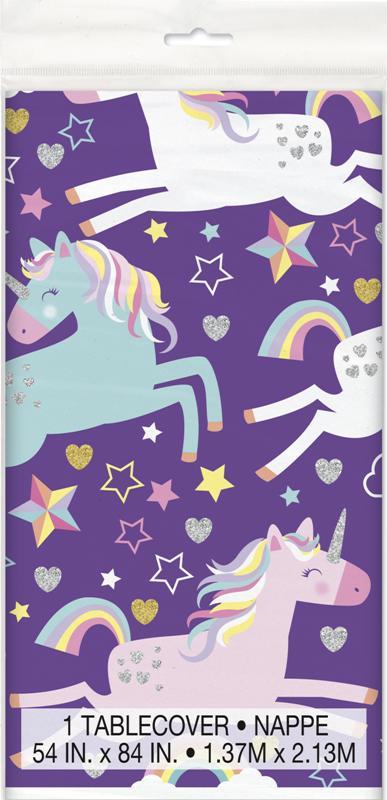 UniqueUnicorn Design Plastic Reusable Table Cover 1 x Plastic Cover Size: 54"x 84" 1.37M x 2.13M