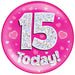6" Jumbo Badge 15 Today Pink Holographic Dot