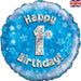 Happy 1st Blue Birthday Balloon 18" Foil Helium (Optional Helium Inflation)