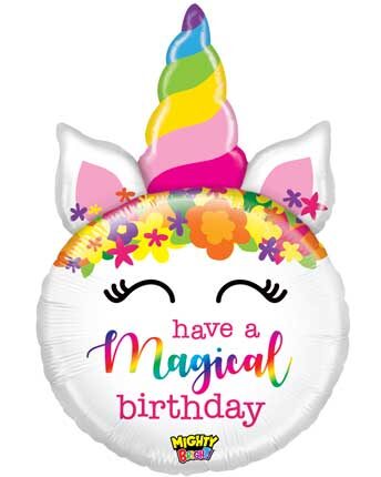 Birthday Unicorn Supersize Helium Filled Balloon 33" (Optional Helium Inflation)