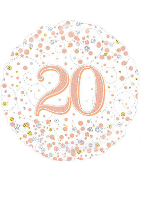 Happy 20th Birthday Rose Gold Round Helium Filled Balloon (Optional Helium Inflation)