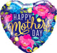 Happy Mothers Day Heart Colourful Peonies Foil Balloon (Optional Helium Inflation)