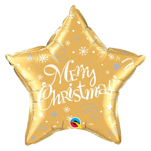 Merry Christmas Gold Star Balloon 20" Foil Helium Balloon (Optional Helium Inflation)