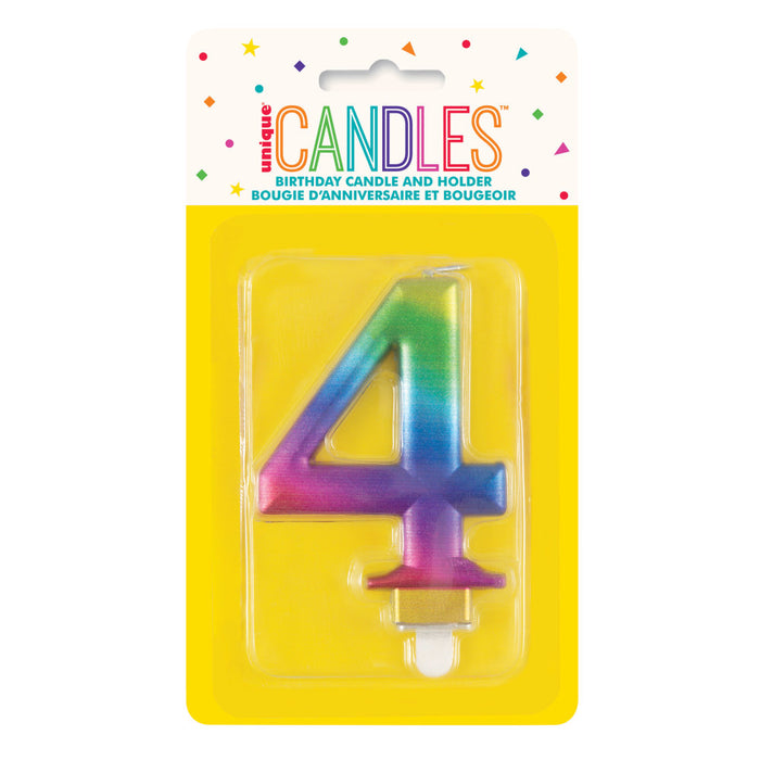 Metallic RAINBOW Number 4 Birthday Candle