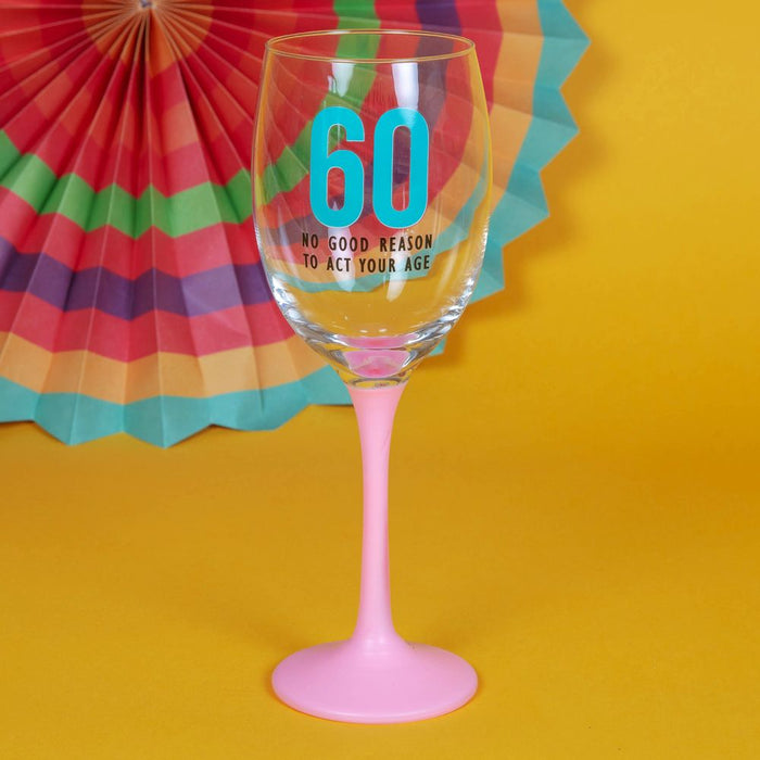 Help them raise a glass to their birthday with this pink and turquoise 60 wine glass. From Oh Happy Day! by CELEBRATIONS® - fun and colourful gifts to celebrate the big birthdays. Details: - 250ml wine glass - Pastel pink stem and base - 60 - NO GOOD REASON TO ACT YOUR AGE sentiment - Branded gift box - Suitable for washing machine Oh Happy Day! by CELEBRATIONS® is a brand new collection of vibrant birthday gifts to celebrate those milestone numbers. Whatever the number, 18 or 80, commemorate the celebrations in style. Photo frames, glassware and even socks! Oh Happy Day! is a true celebration of life.