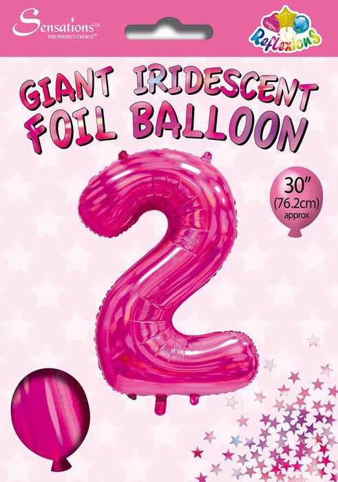 Pink Iridescent Number 2 Giant Foil Balloon 30" (Optional Helium Inflation)