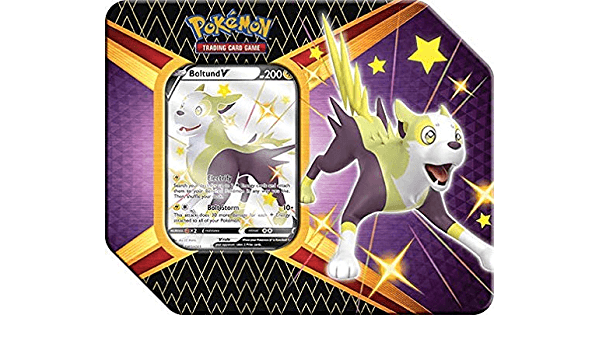 The shiny vault is full of distintively colored Pokemon, including three especially fine ones from the Galar region! Choose the fluffy power of Eldegoss V, the lightning strikes of Boltund V, or the watery missiles of Cramorant V in the Pokemon Trading Cards Game : Shining Fates Tin.