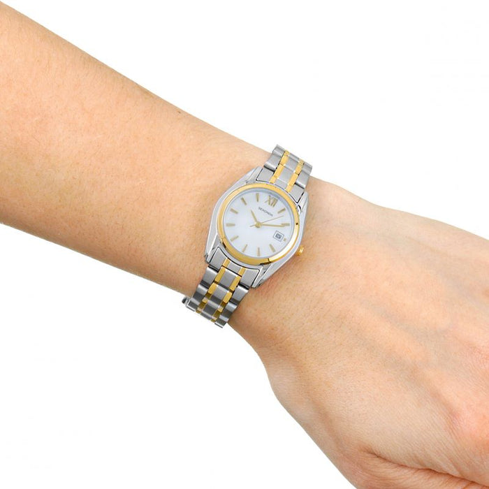 Sekonda 2393 is an incredible attractive Ladies watch. Case is made out of Two-tone steel/gold plate and the Mother of pearl dial gives the watch that unique look. The features of the watch include (among others) a date function. The watch is shipped with an original box and a guarantee from the manufacturer.